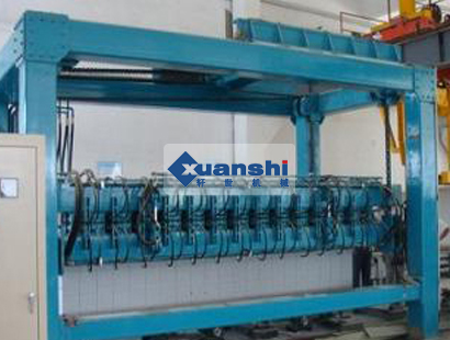 1.機型結(jié)構(gòu)精簡實用,便于安裝維修; 2.坯體翻轉(zhuǎn)后直立使坯體寬度為600mm,高度為1200mm,這樣切割鋼絲使用更短,所以不易拉斷,不易漂移,切割精度高; 3.縱向切割裝置是固定的,坯體在切割小車上行走完成縱向切割。水平式橫切裝置采用鏈條傳動能保持橫切架升降傳動一致,保證切割精度; 4.坯體直立后兩側(cè)(600mm寬)可在坯體縱向切割,同時完成銑槽,不需要配置槽口加工設(shè)備; 5.本機型除生產(chǎn)砌塊外還生產(chǎn)板材,而且對坯體作六面切割,所以制品質(zhì)量不受涂模油及模具變形影響; 6.設(shè)備操作簡單方便,該機型切割過程(翻轉(zhuǎn)、縱切、橫切)分別在不用工位完成,因此各工位工作得到簡化,操作保養(yǎng)方便。