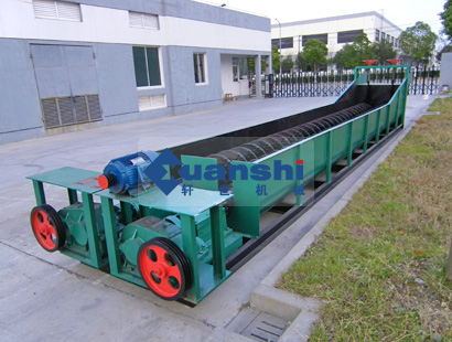 該產品適用于建筑工地、砂石廠、水電站混凝土大壩工地、郵電電桿廠需單位砂石及鑄造用“七0”砂、玻璃廠石英砂及油井回填用壓力砂的洗選、分級和脫水。砂石洗選機按15°傾斜布置,水槽下部由三邊堰板包圍形成沉淀池,螺旋頭部沒入沉淀池內,螺旋由電動機經減速器驅動連續旋轉,由沉淀池底部多孔板給入清洗水。該設備兼有清洗、脫水、分級三種功能。